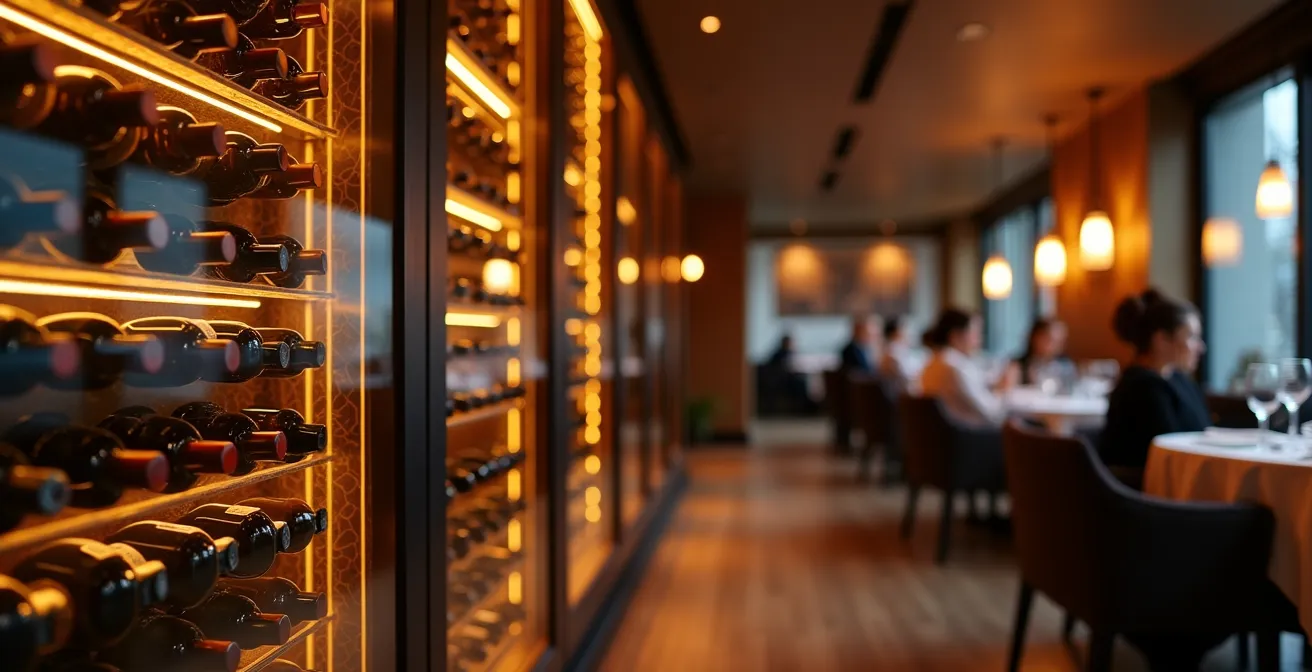 Cette approche permet de créer un point focal dans votre salle, un appel visuel qui intrigue et incite à la découverte de la carte des vins. La cave n’est plus un simple réfrigérateur, mais une lanterne magique qui expose vos trésors en toute sécurité, un moteur de valeur perçue qui travaille en silence.