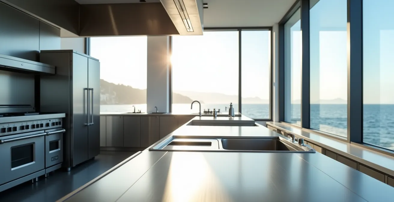 En définitive, que l’on parle de l’alliage d’un plan de travail, du polymère d’une étagère ou de la conception d’une zone de plonge, la longévité de votre cuisine professionnelle repose sur une compréhension fine des interactions entre les matériaux et leur environnement. Choisir l’inox 304 plutôt que le 430 en bord de mer n’est pas un caprice, c’est une décision scientifique pour contrer l’agression des chlorures. De même, exiger de la visserie A4 est une assurance contre la corrosion galvanique. Votre rôle, en tant que gestionnaire, est de dépasser les arguments commerciaux pour adopter une vision de métallurgiste : anticiper les faiblesses, comprendre les réactions et construire un écosystème de matériaux qui travaillent ensemble, et non les uns contre les autres. C’est le secret d’un investissement réellement pérenne. Pour garantir la pérennité de votre investissement et concevoir une cuisine qui résiste réellement à l’épreuve du temps et de votre environnement, l’étape suivante consiste à réaliser un audit de vos équipements actuels et de vos futurs projets.