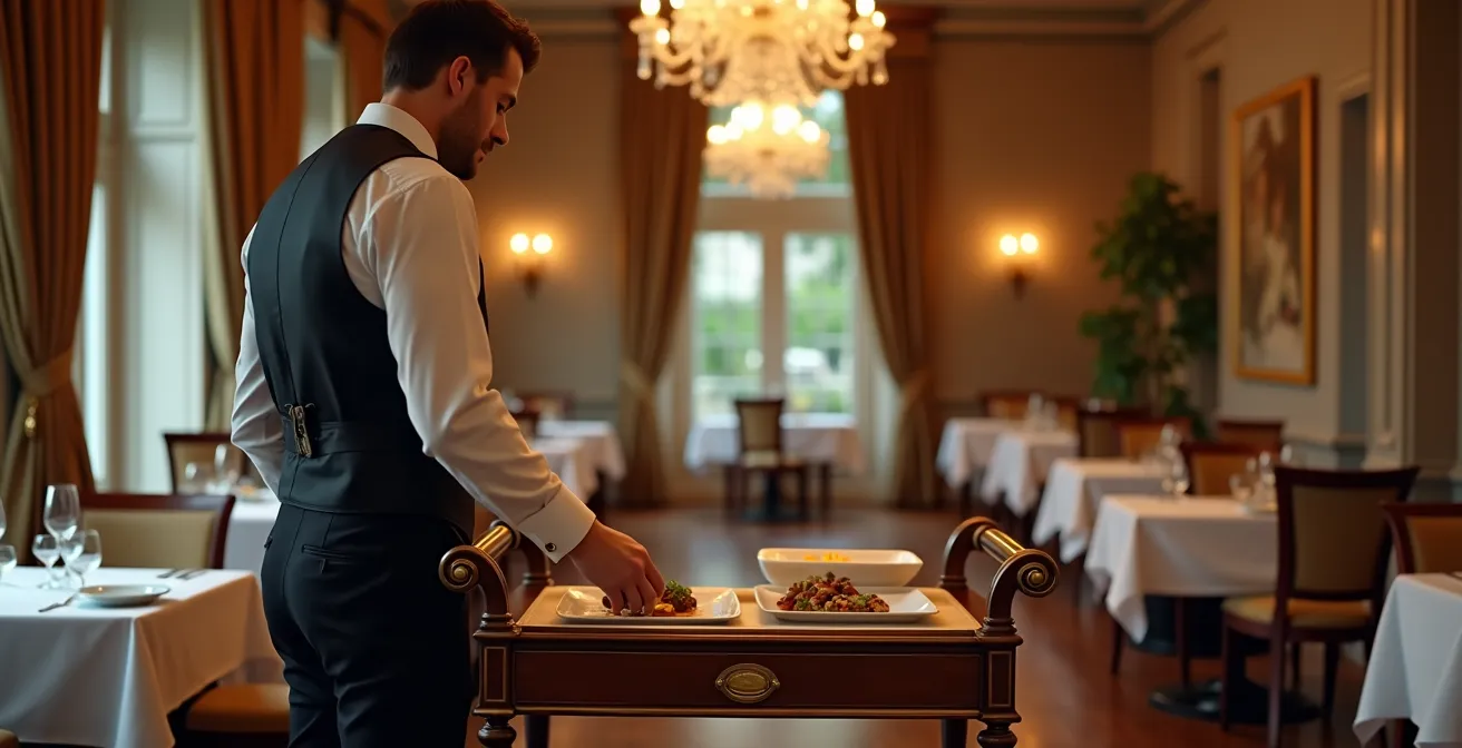 Cet article n’est pas un plaidoyer pour le passé. C’est un guide stratégique pour transformer un art de la salle en un puissant outil de marge. Nous allons décortiquer ensemble les aspects techniques, logistiques et psychologiques qui font du service au guéridon bien plus qu’une animation : un argument commercial imparable. De la circulation en salle à la découpe précise qui sauve vos marges, chaque étape est une opportunité de prouver votre valeur.